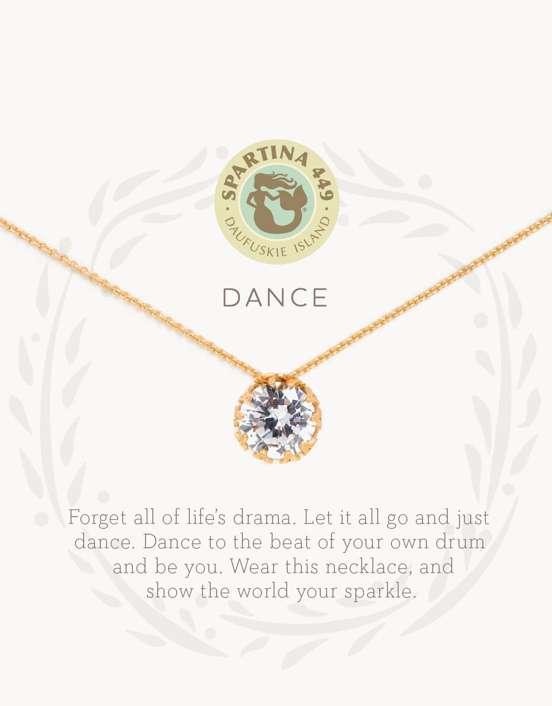 Wear our Dance Necklace as a reminder to listen to your heart. Featuring a gem pendant, this special piece comes packaged inside a beautiful box with the message: “When the waters are rough, wear these earrings and remember that, like an oyster making a pearl from sand, peace comes from within.”