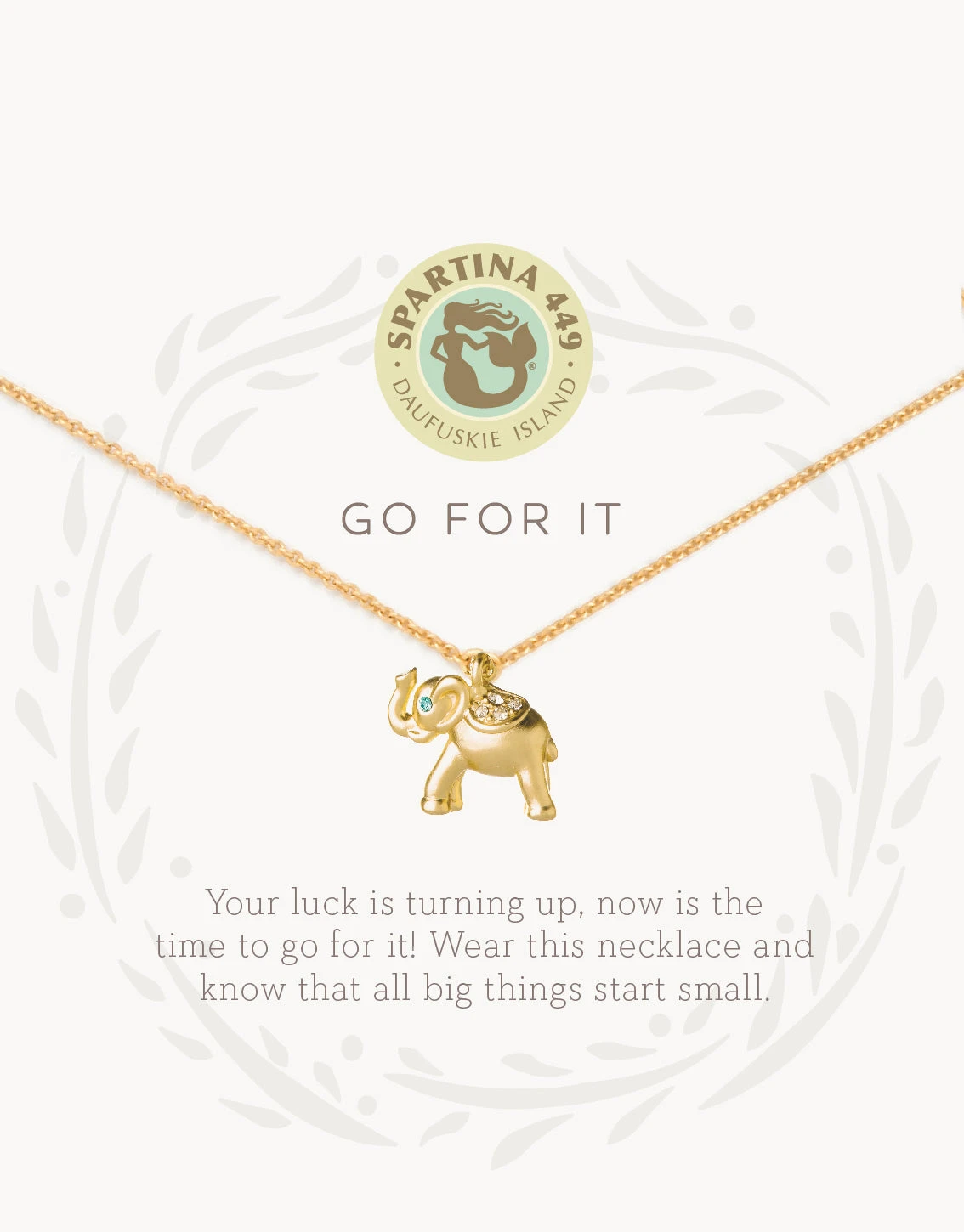 Wear our Go For It Necklace as a reminder to chase your dreams. Featuring an elephant charm, this special piece comes packaged inside a beautiful box with the message: “Your luck is turning up, now is the time to go for it! Wear this necklace and know that all big things start small.”