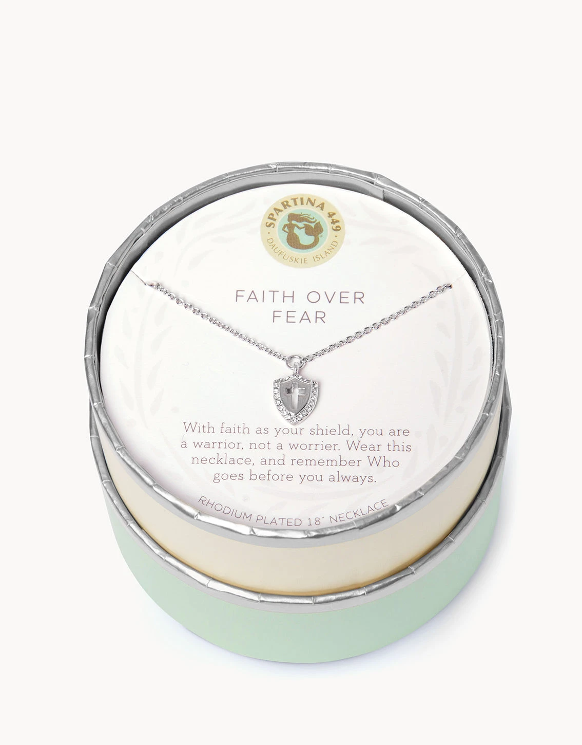 Wear our Faith Over Fear Necklace as a reminder that you’re a warrior. Featuring a cross charm, this special piece comes packaged inside a beautiful box with the message: “With faith as your shield, you are a warrior, not a worrier. Wear this necklace, and remember Who goes before you always.”