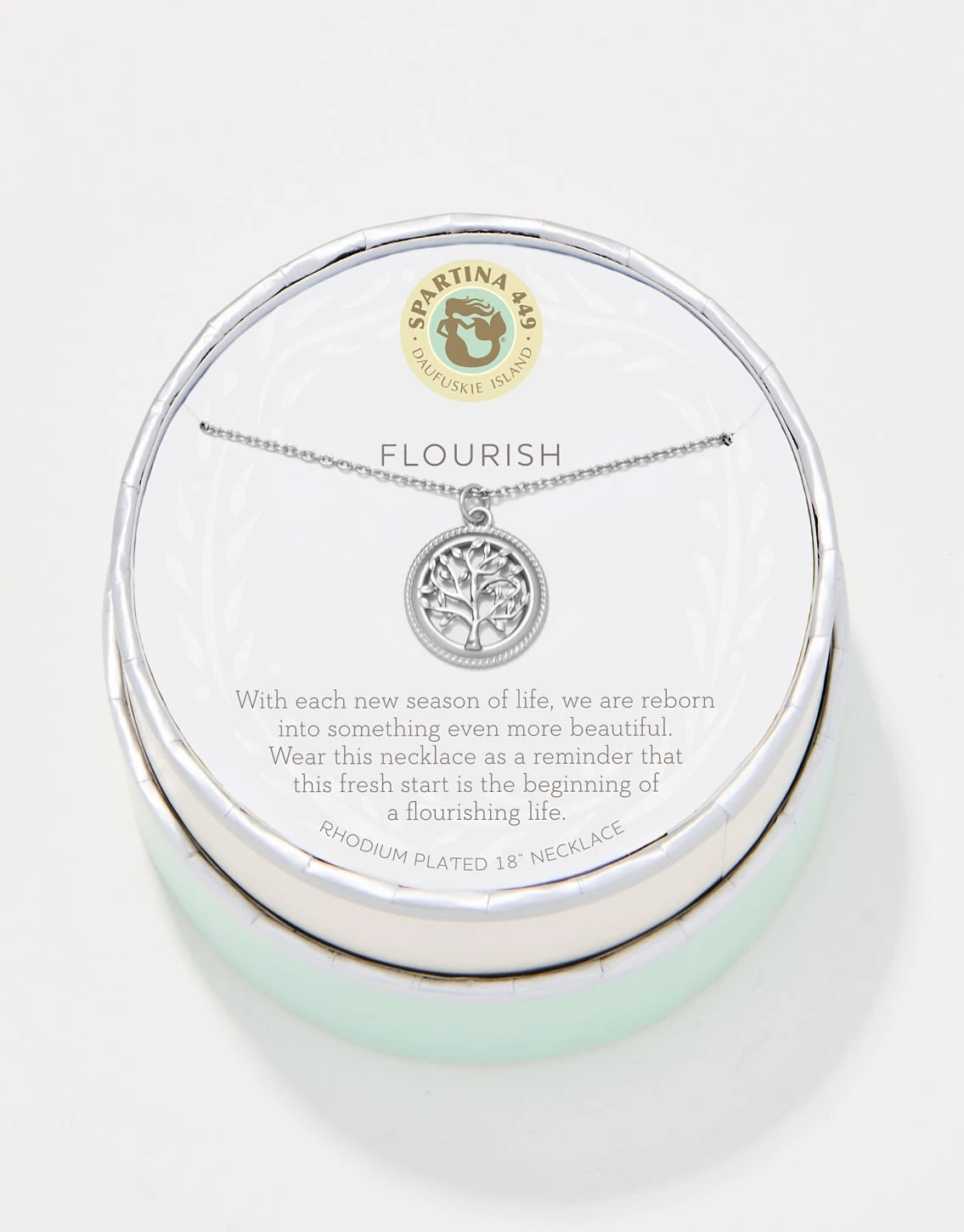 Wear our Flourish Necklace as a reminder of a flourishing life. Featuring a tree of life charm, this special piece comes packaged inside a beautiful box with the message: “With each new season of life, we are reborn into something even more beautiful. Wear this necklace as a reminder that this fresh start is the beginning of a flourishing life.”