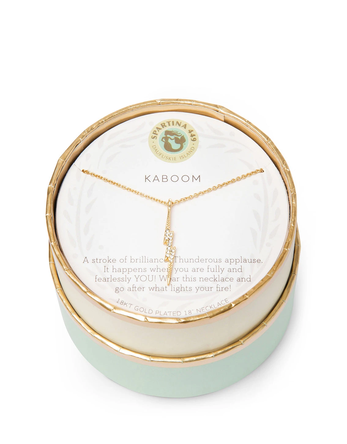 Wear our Kaboom Necklace as a reminder to live fearlessly. Featuring a lightning charm, this special piece comes packaged inside a beautiful box with the message: “A stroke of brilliance. Thunderous applause. It happens when you are fully and fearlessly YOU! Wear this necklace and go after what lights your fire!”