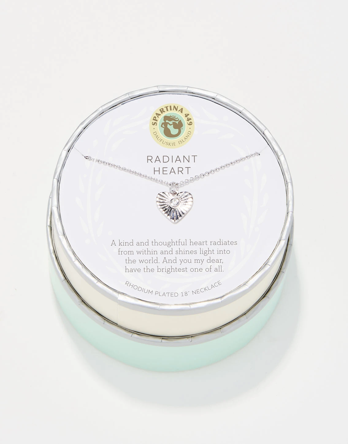 Wear our Radiant Necklace as a reminder to shine bright. Featuring a heart charm, this special piece comes packaged inside a beautiful box with the message: “A kind and thoughtful heart radiates from within and shines light into the world. And you my dear, have the brightest one of all.”