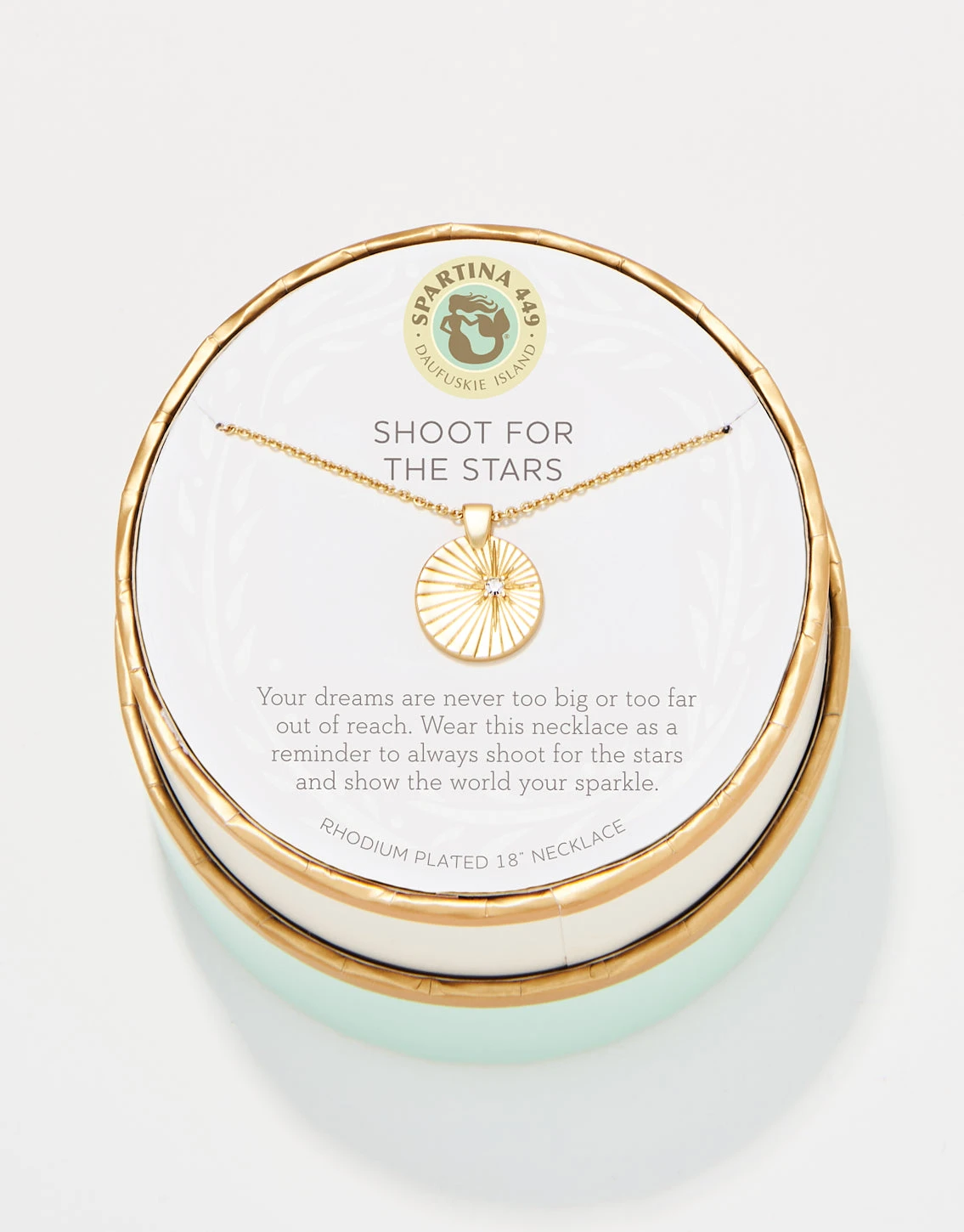 Wear our Shoot For The Stars Necklace as a reminder to shoot for stars. Featuring a star medallion charm, this special piece comes packaged inside a beautiful box with the message: SHOOT FOR THE STARS: “Your dreams are never too big or too far out of reach. Wear this necklace as a reminder to always shoot for the stars and show the world your sparkle.”