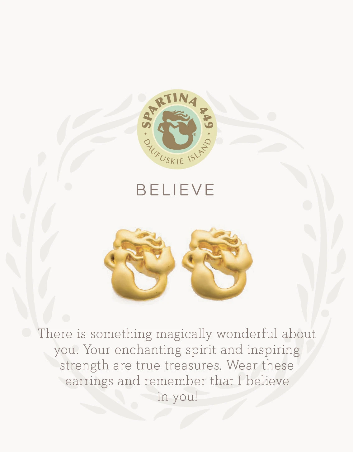 Wear our Believe Stud Earrings as a reminder to see the magic. Featuring a mermaid charm, this special piece comes packaged inside a beautiful box with the message: “There is something magically wonderful, perfectly Spartina about you. Your enchanting spirit and inspiring strength are true treasures. Wear this necklace and remember that I believe in you!”