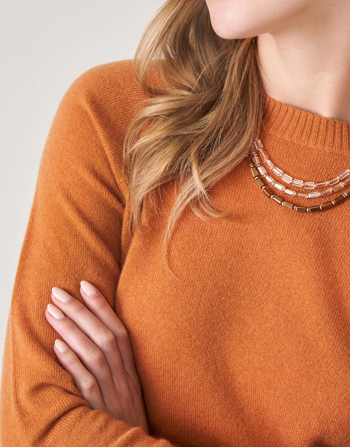 Chilly weather essential: a cute crewneck sweater… more specifically, our Shelby Cashmere Pullover! Made of soft, comfortable 100% cashmere with long raglan sleeves and ribbed collar, cuffs, and hem, this pullover sweater was made for going from snuggly mornings on the front porch swing to cool afternoons taking in all your city’s sites.