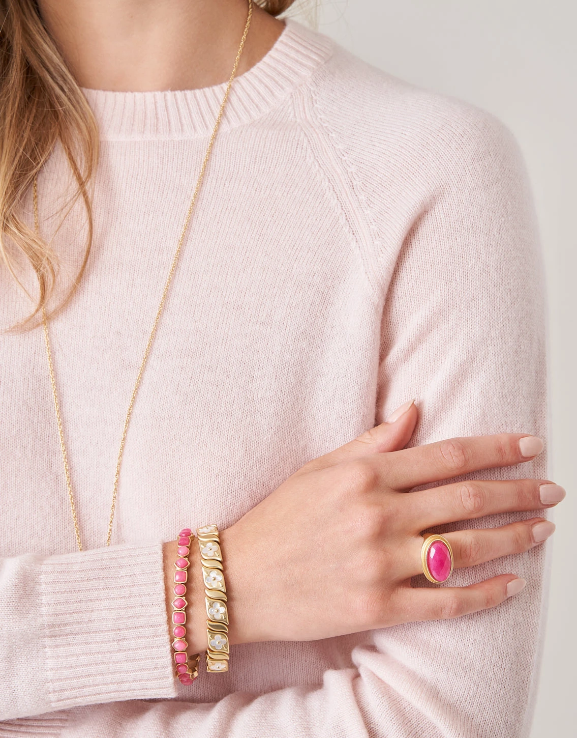 Chilly weather essential: a cute crewneck sweater… more specifically, our Shelby Cashmere Pullover! Made of soft, comfortable 100% cashmere with long raglan sleeves and ribbed collar, cuffs, and hem, this pullover sweater was made for going from snuggly mornings on the front porch swing to cool afternoons taking in all your city’s sites.