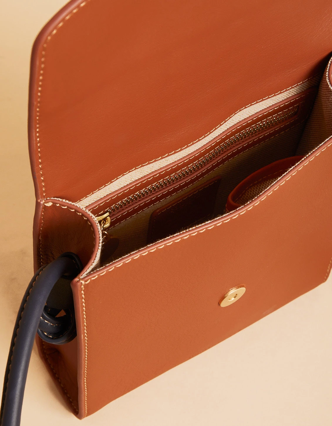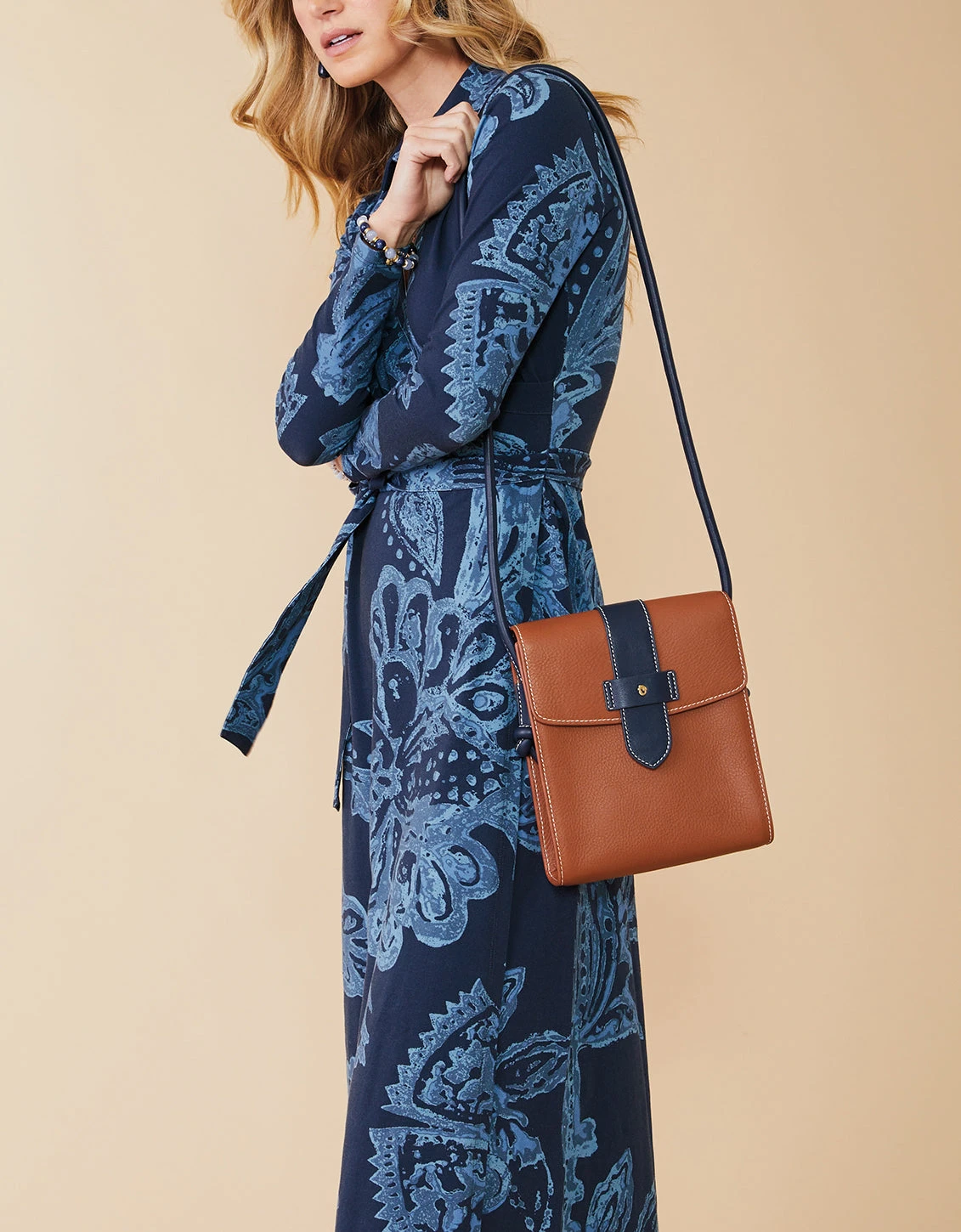 Taking the shape of a slim, mini messenger, our Siren Camilla Crossbody boasts casual luxury in our luxurious, premium top grain leather. The faux belted front flap opens to 2 slip pockets and 1 zipper pocket, while the exterior features 1 large back slip pocket. The bag’s chestnut brown is complemented by navy accents for added style.