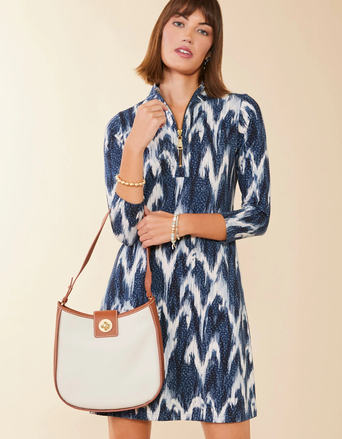 Take in the colors of the Lowcountry with our Oyster Colorblock Heidi Hobo, featuring soft, premium, natural grain leather . This shoulder bag features a luxe, matte gold turn-key closure and a woven lined interior with two slip pockets and a zipper pocket.