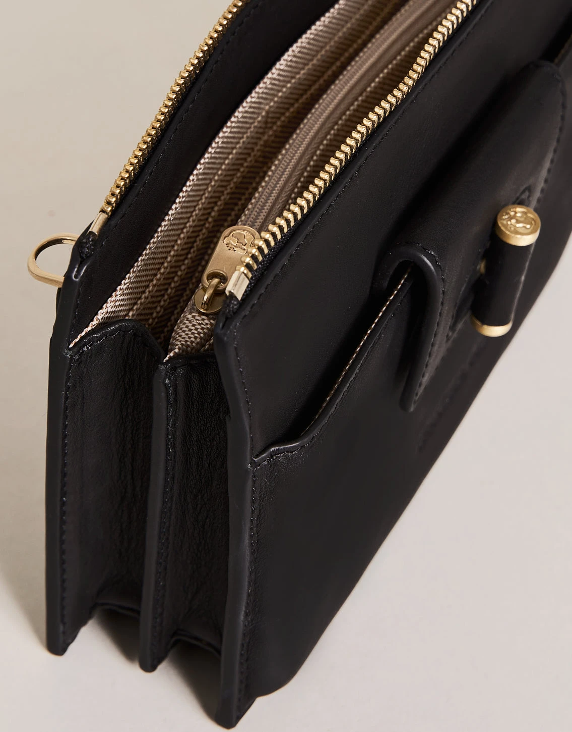 Our super-soft, premium top grain calf leather Lindsey phone Crossbody is all zipped up and ready to a-go-go. How so? Slip your phone into the front pocket under the matte gold, turnkey closure then neatly carry up to 15 cards and more. And this tiny totable attaches to a thin crossbody strap, making you a master of minimalism.