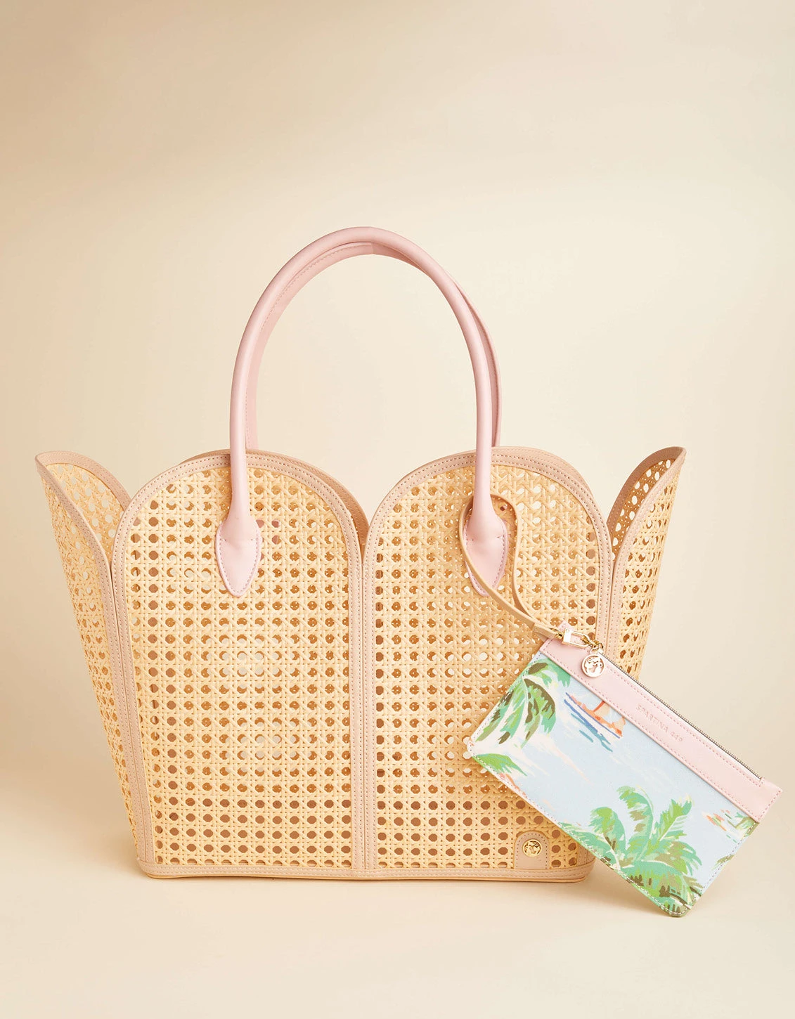 Crafted with water & sand resistant faux cane, this bag is perfect for a day at the beach – you can shake the sand right out of our Splash Cane Beach Tote! So grab your sunnies, flip flops, a lounge chair read and some coconutty SPF… it’s time to relax. Plus, our coastal dreams laminated zip pouch is included!