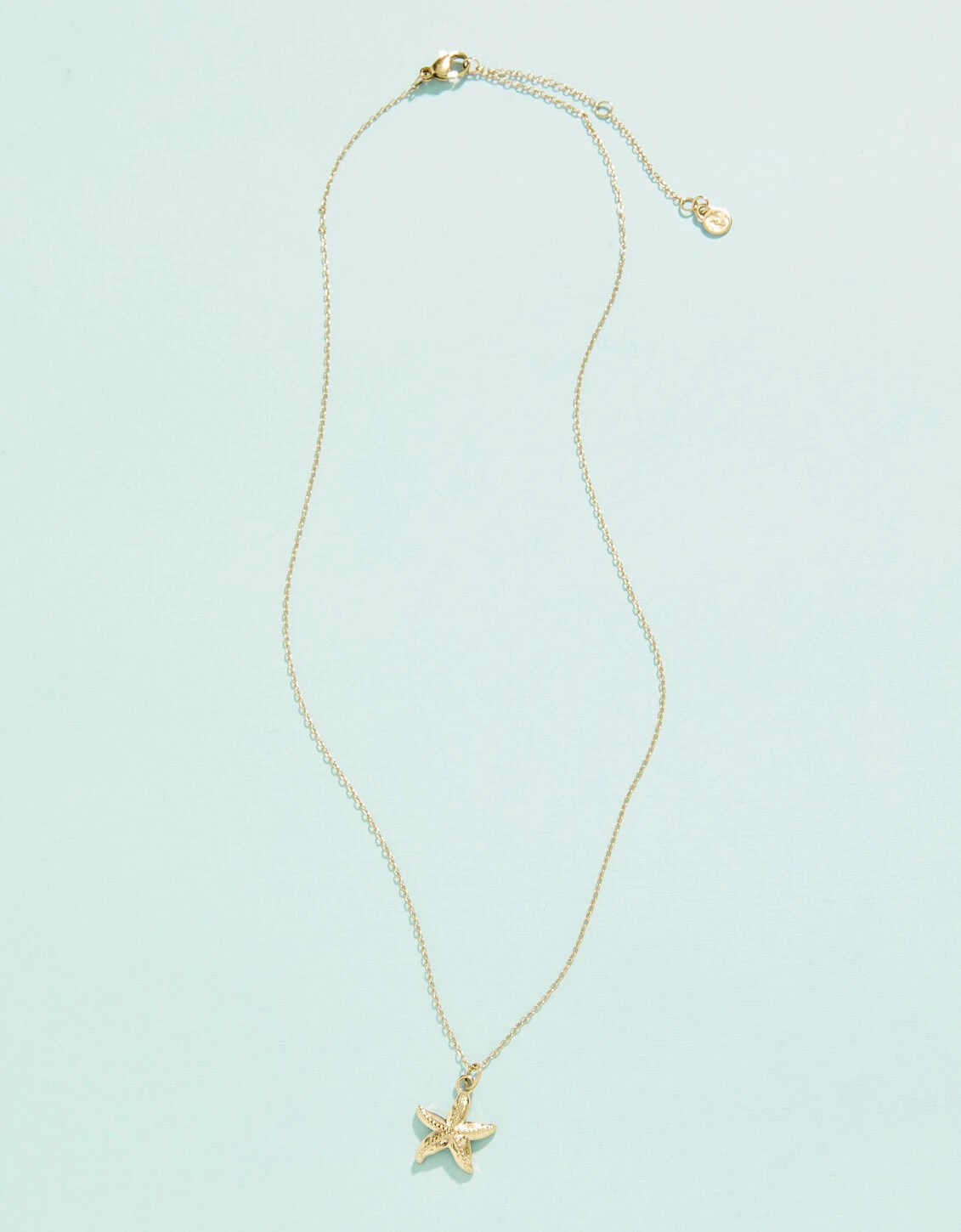 It’s your time to shine bright like this star of the sea! Designed to shine through everyday wear, exercise, showers and a summer at the beach in tarnish free 14kt gold vacuum plating. This is a necklace you will never have to take off.