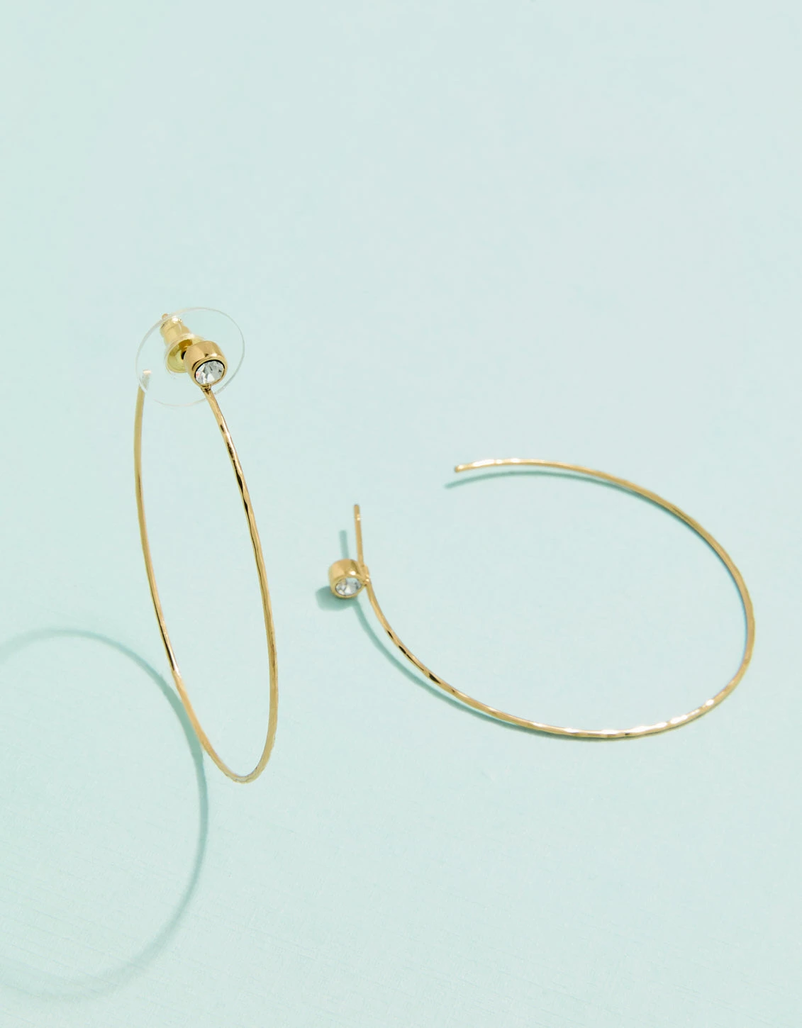 These Ultrathin Hoops are literally ultrathin and featherweight. You will forget you are wearing them! Topped with a little sparkle for added fun. This tarnish-free, water-resistant jewelry is designed to shine through everyday wear, exercise, showers, and a summer at the beach.