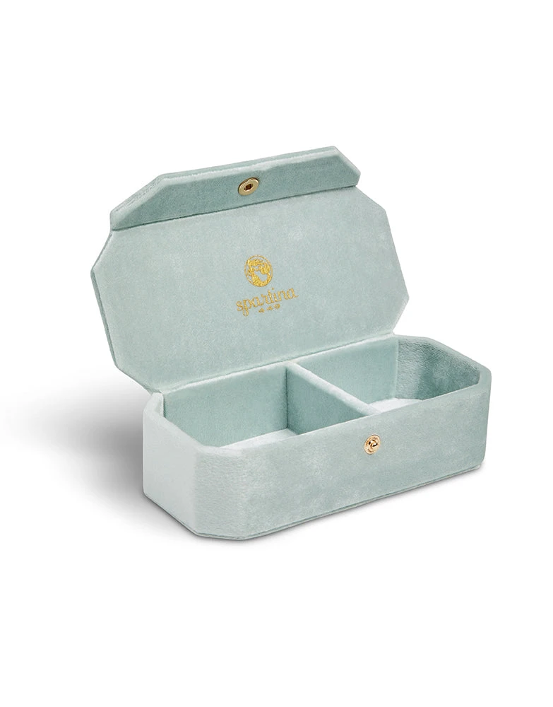 Elegantly store your Spartina Jewelry in this snap closure velvet box. The plush soft velvet interior protects your jewelry in style. A great way to organize our new Charm Collection. Also makes a great jewelry gift companion.