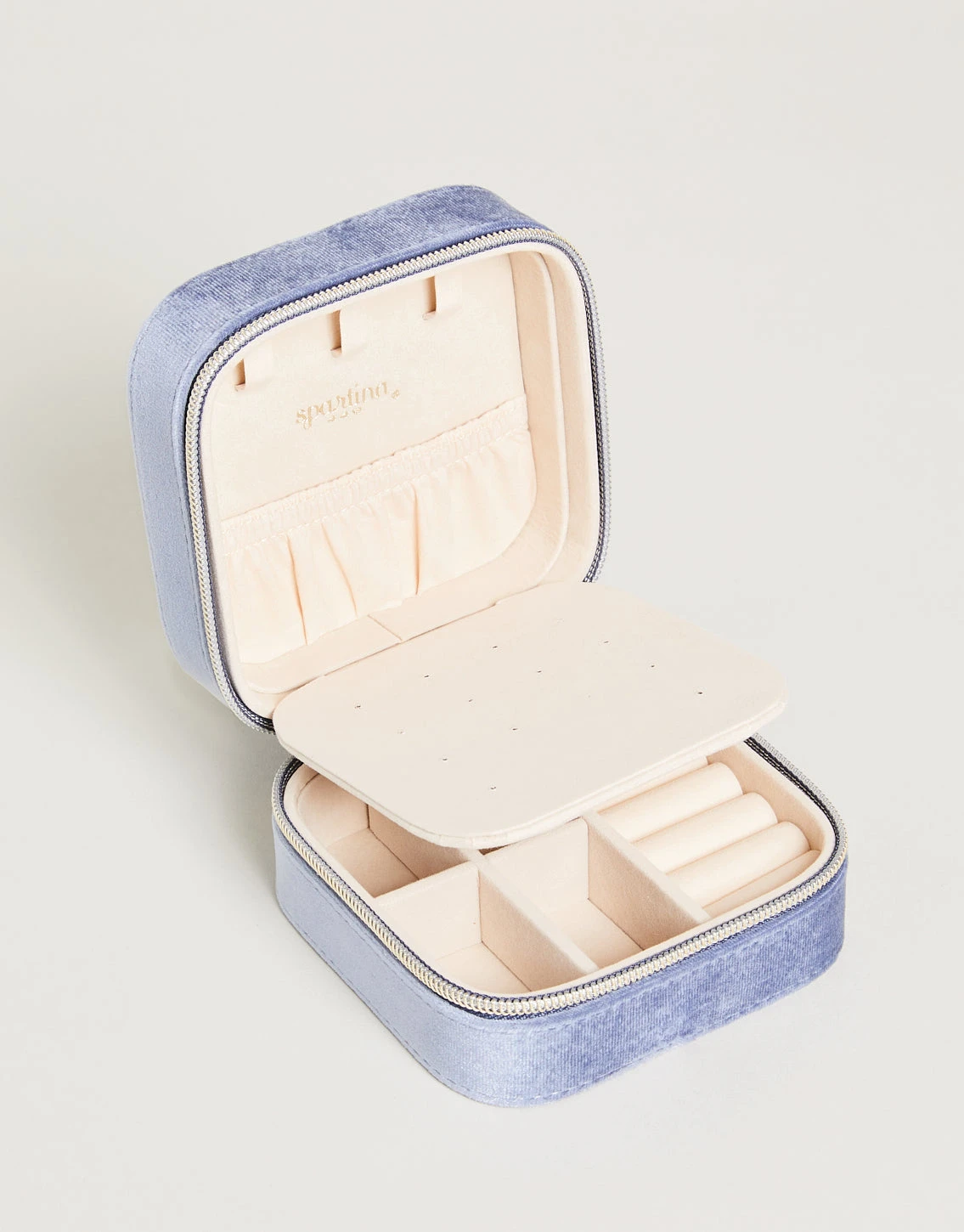Dress up your dresser and stash your pearls and pendants in one of our elegant velvet jewelry organizers. Lined with soft faux suede to protect your jewelry collection, this case features Spartina gold tone hardware and organized spaces for rings, earrings, and necklaces.
