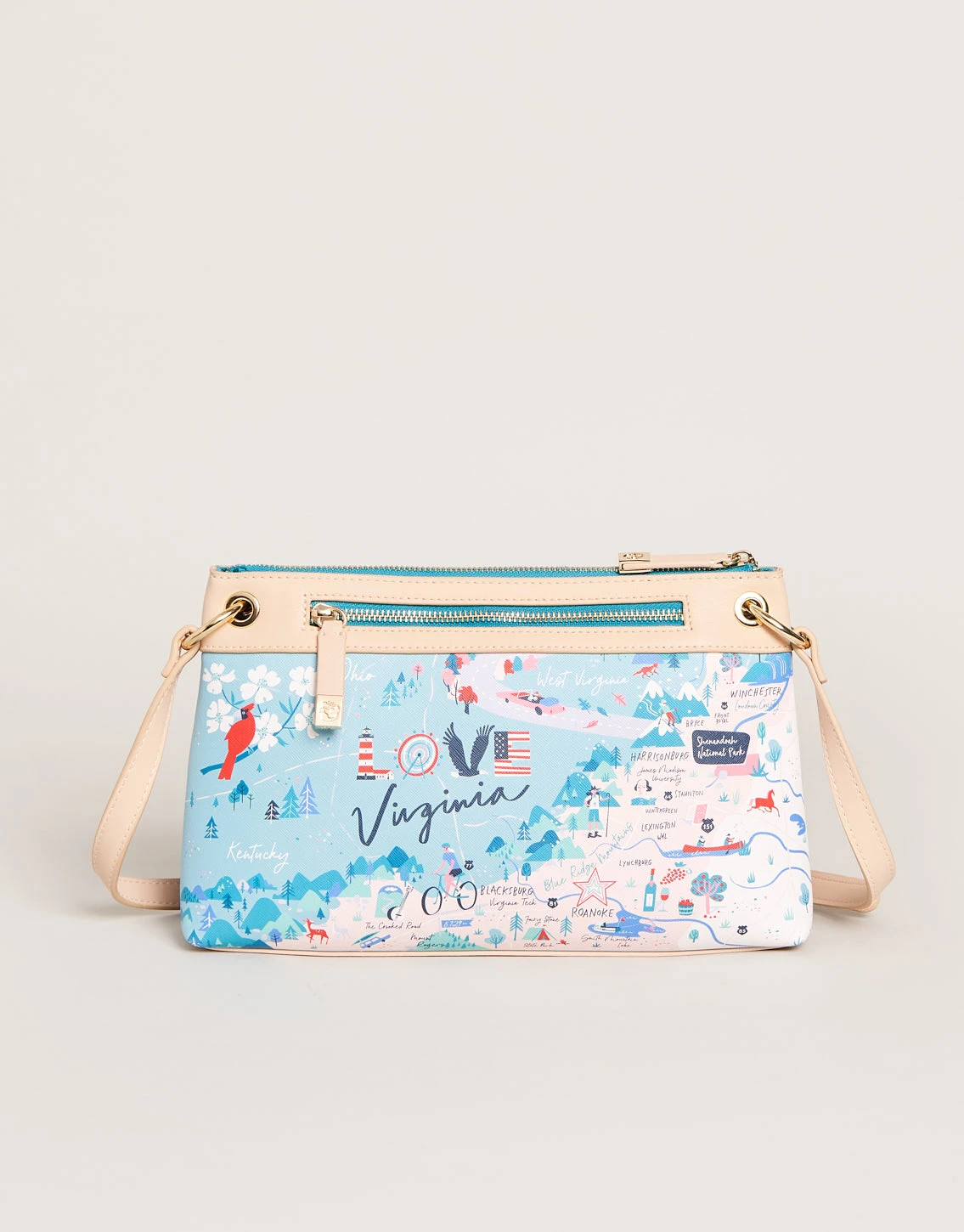 From weekends to weekdays, this Greetings From Crossbody is crafted for fun, ease and comfort. An adjustable faux leather crossbody strap is fastened securely with golden hardware to a textured vinyl exterior. The top zips closed and there is a handy back exterior zip pocket. Inside there are two slip and one zip pocket housed in a canvas lining.