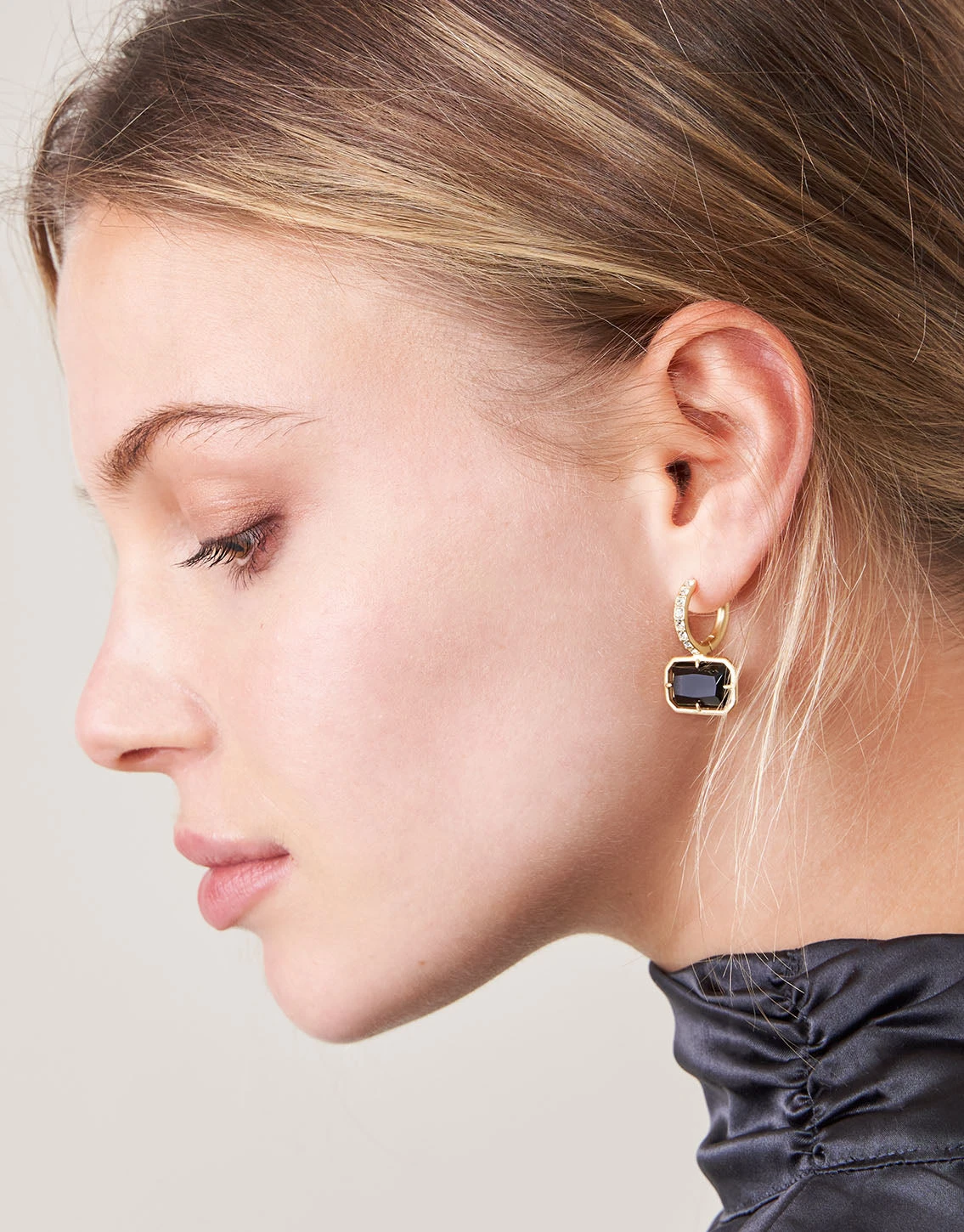 Made for holiday parties, our White Hall Earrings shimmer and shine with glass crystals set in 18kt matte gold plated settings.